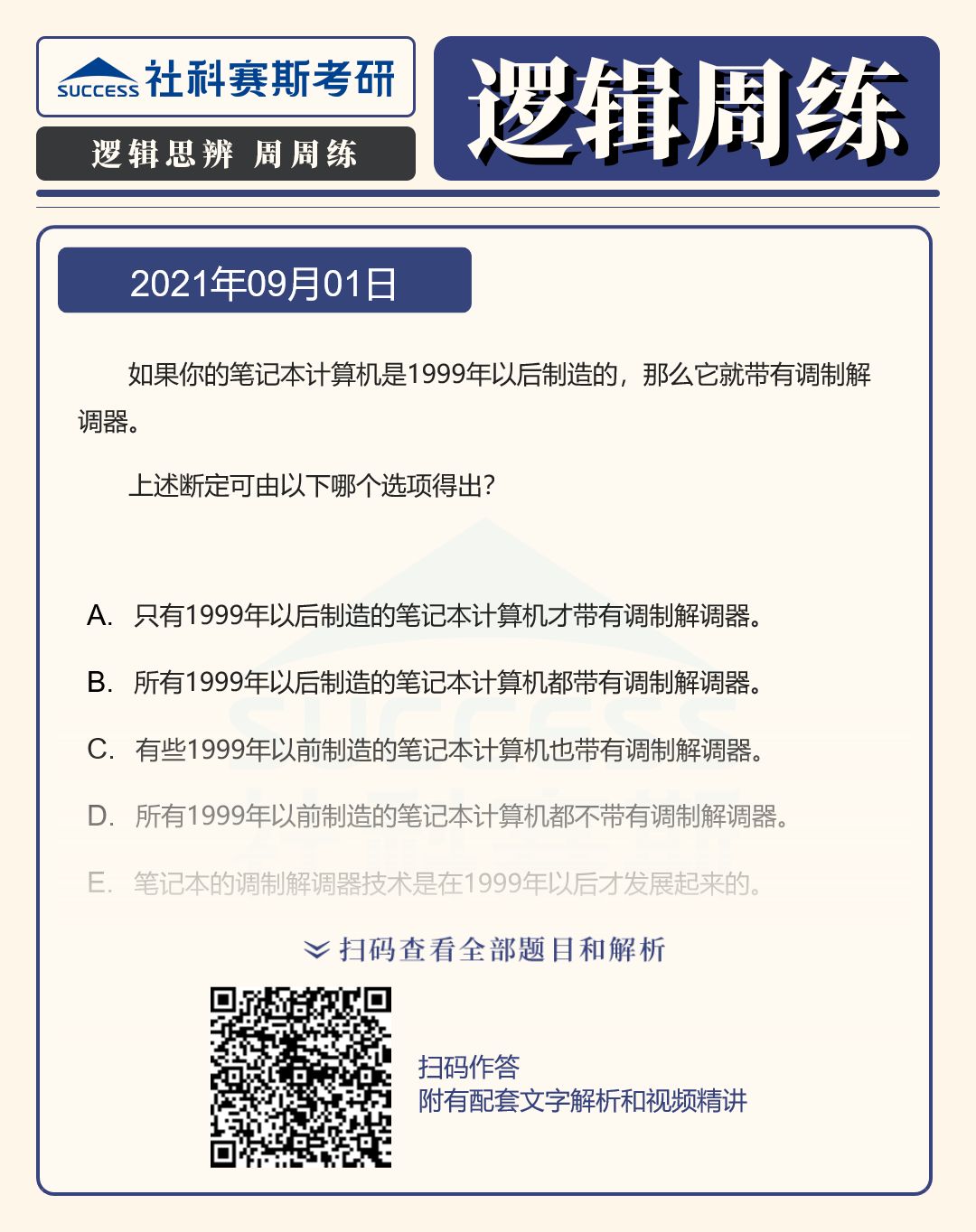 以上就是“2022MBA邏輯:2022MBA聯考邏輯習題及答案解析(9月1日)”的全部內容,更多邏輯精選習題,請持續關注社科賽斯MBA備考網!