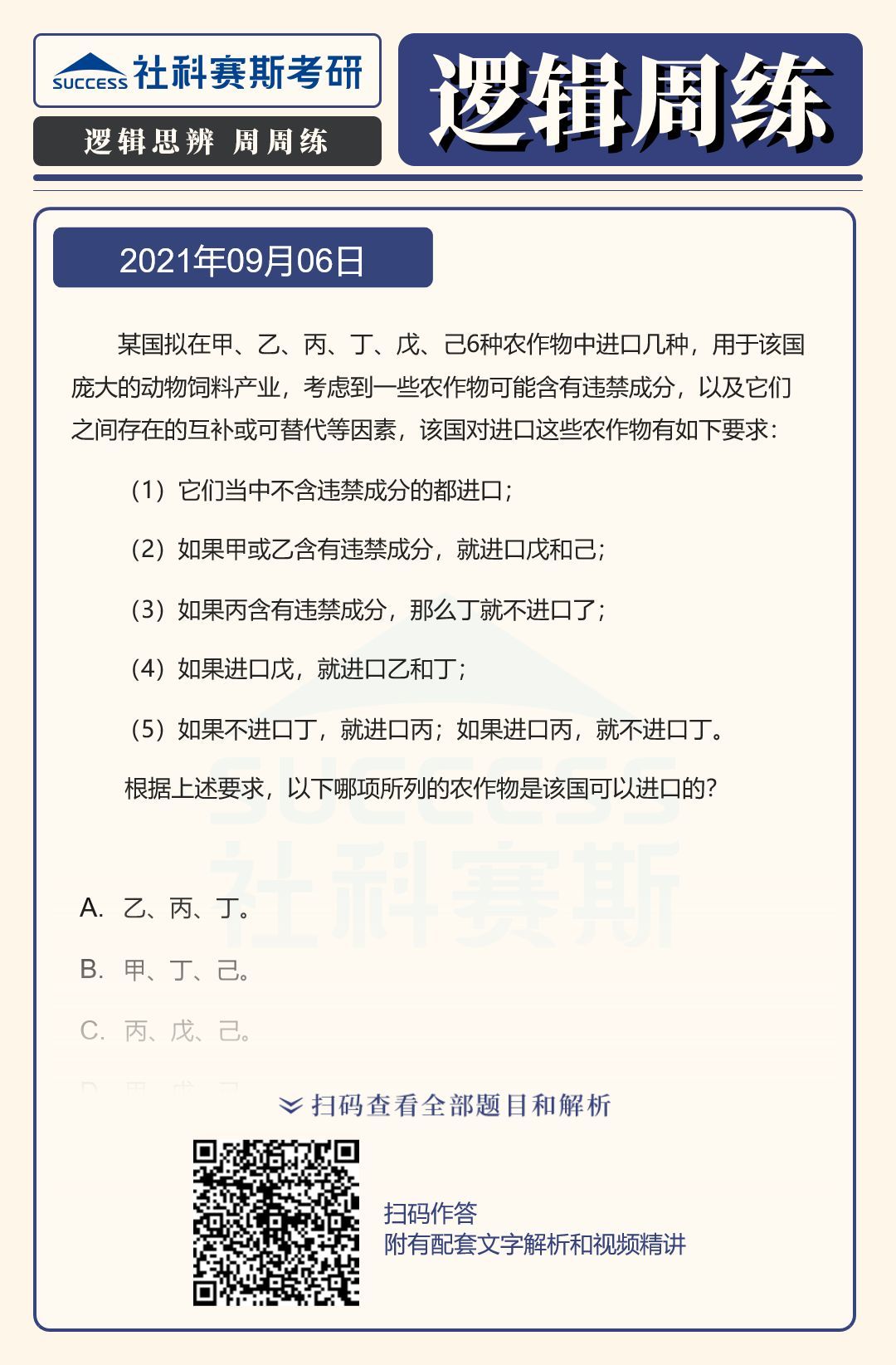 以上就是“2022MBA邏輯:2022MBA聯考邏輯習題及答案解析(9月6日)”的全部內容,更多邏輯精選習題,請持續關注社科賽斯MBA備考網!
