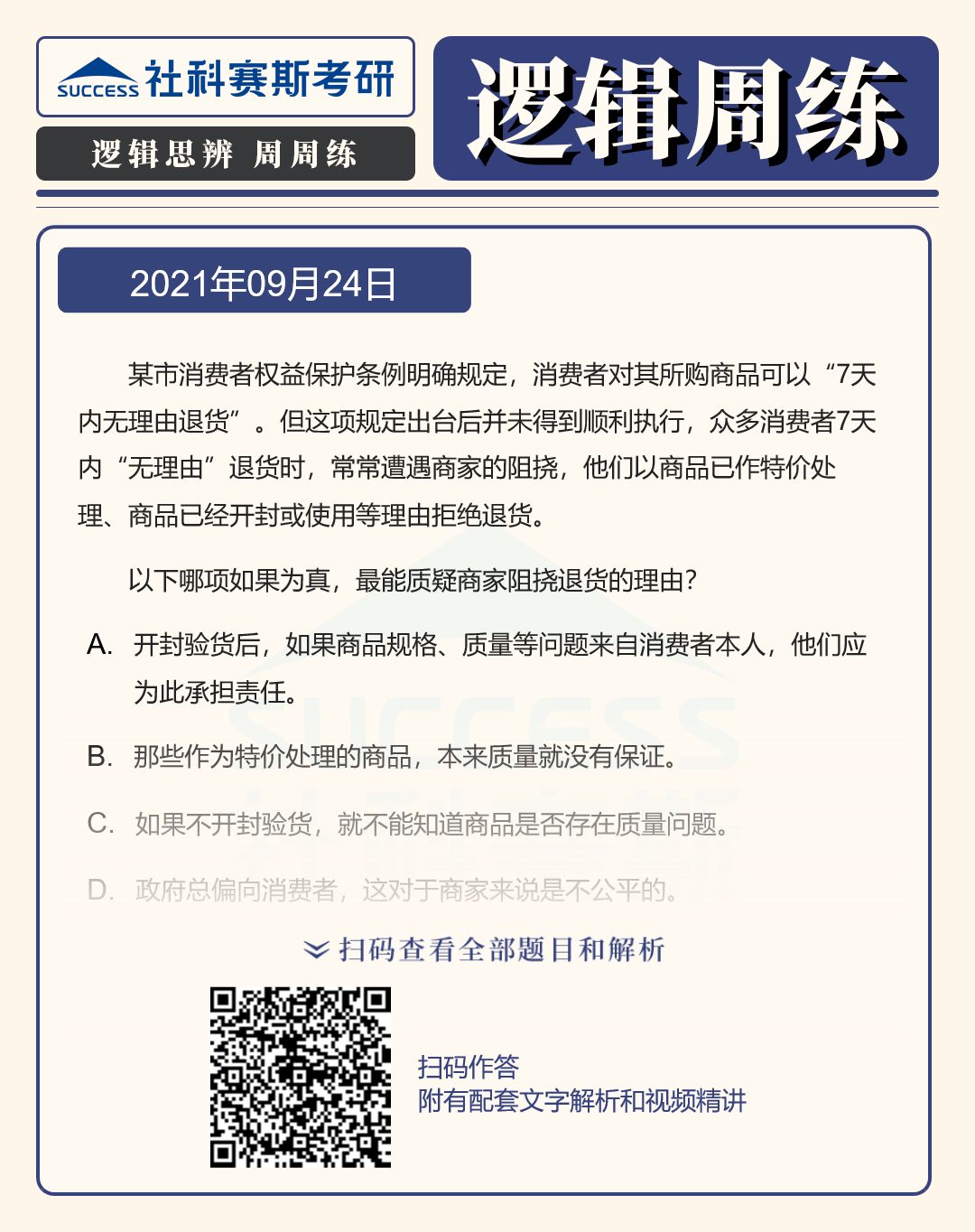 以上就是“2022MBA邏輯:2022MBA聯考邏輯習題及答案解析(9月24日)”的全部內容,更多邏輯精選習題,請持續關注社科賽斯MBA備考網!
