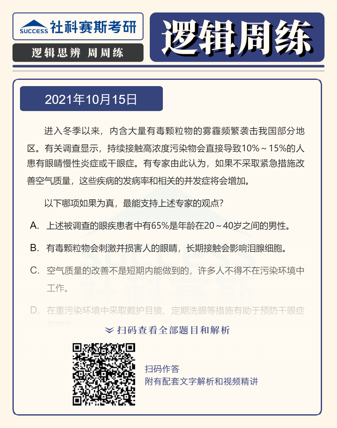 以上就是“2022MBA邏輯:2022MBA聯考邏輯習題及答案解析(10月15日)”的全部內容,更多邏輯精選習題,請持續關注社科賽斯MBA備考網!