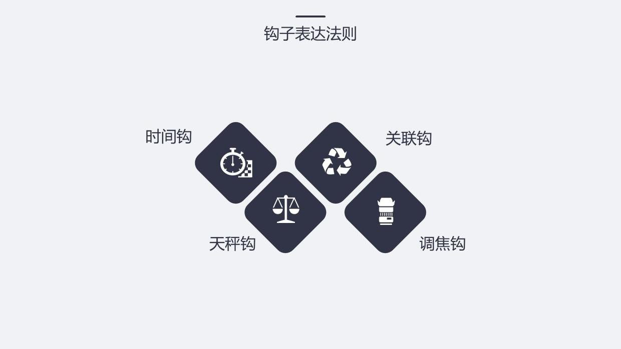 常見的鉤子有“過去、現在、未來”、“去年、今年、明年”、“短期、中期、長期”