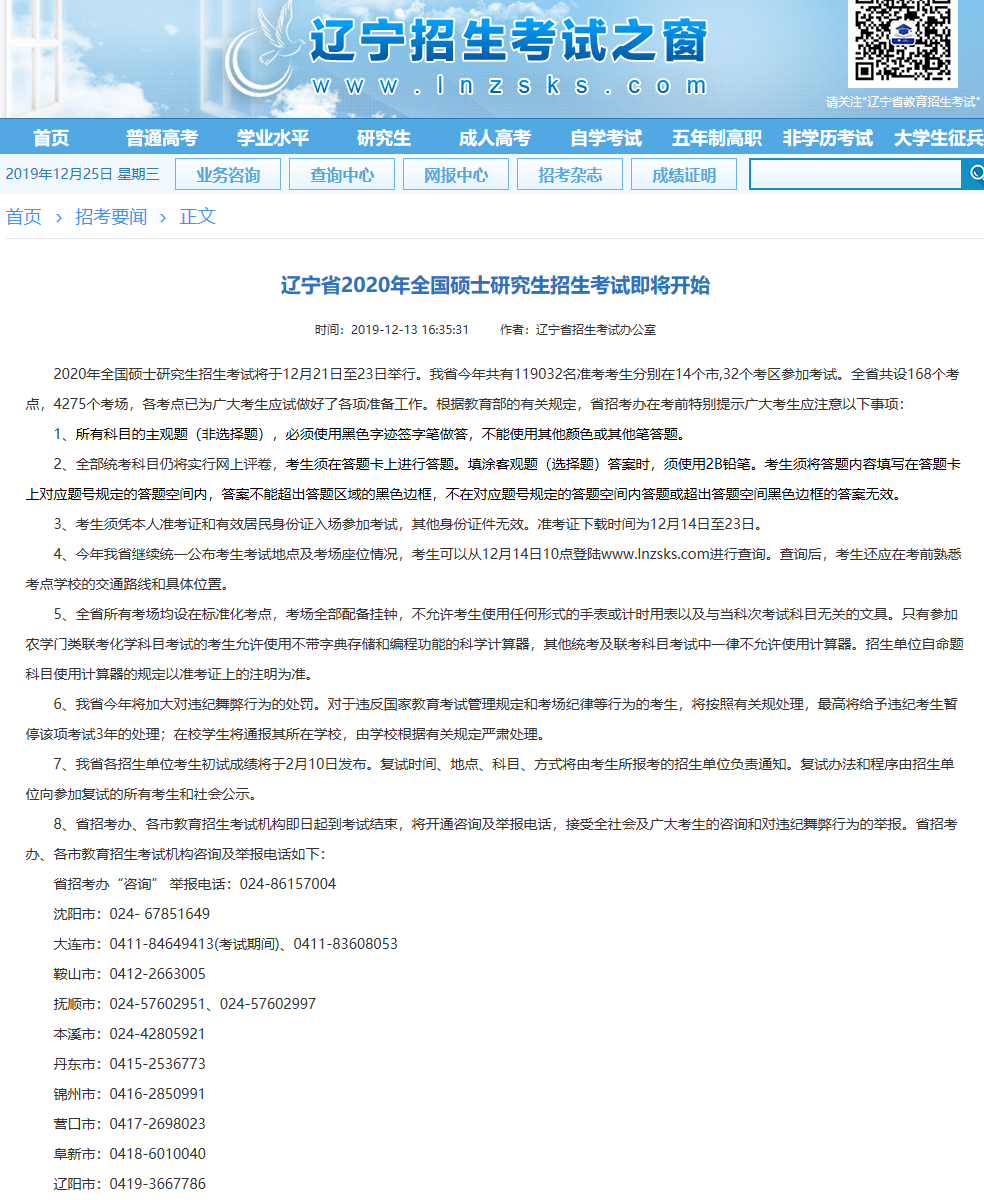 遼寧省招生考試辦公室公布的“遼寧省2020年全國碩士研究生招生考試即將開始”可得知,2月10日發布成績。