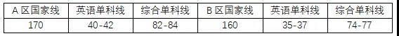 即A區國家線有較大概率還是停留在170,而在單科方面,英語單科線在40-42分,綜合單科線在82-84分波動的概率最大。B區國家線在160,英語單科線在35-37,綜合在74-77。