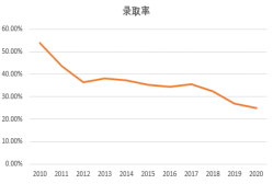 同時我們也可以明顯看出,雖然MBA報考人數逐年大幅增長,但MBA考生錄取比例整體卻呈下降趨勢,國家線也因而在近幾年有一個調高的趨勢,在2018年及2019年均維持在170分,分拆即綜合單科大致需在120分以上,英語單科需在50分以上。因此,單從報考人數來看,在2020年各商學院招生名額沒有一個明顯的增額的情況,國家線仍會設定在170分及以上。