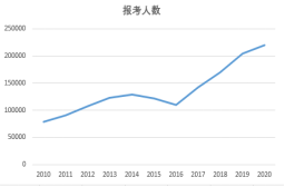 首先,從全國MBA2020級報考人數來看。近年來高校畢業生逐年增長,在畢業生就業壓力、非全日制納入統考、研究生招生擴張等因素的刺激下,碩士研究生報名人數呈現快速上升趨勢,2019年達到341萬人,較上一年增加51萬人,增幅達到17.6%,這其中的MBA考生更是達到22萬人,如表所示。