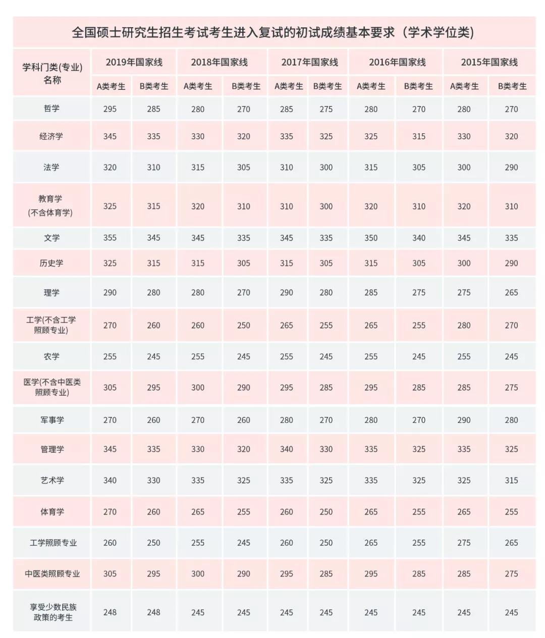 國家線根據各個學科門類劃分,又形成了各個學科門類的分數線。