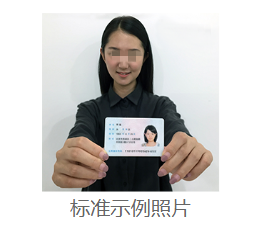拍攝時(shí),手持本人身份證,將持證的手臂和上半身整個(gè)拍進(jìn)照片,頭部和肩部要端正,頭發(fā)不得遮擋臉部或造成陰影,要露出五官;身份證上的所有信息清晰可見(jiàn)、完整(沒(méi)有被遮擋或者被手指捏住)。樣照如下:
