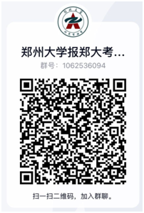 熱忱歡迎各位同學報考本校研究生,有意向的同學請用QQ掃下面的二維碼加入我校研招宣傳聯絡員創建的“報考鄭大考研QQ交流群”,報考鄭大相關問題可在群里向學長們咨詢,同時考試相關提醒信息我們也會通過QQ群通知。