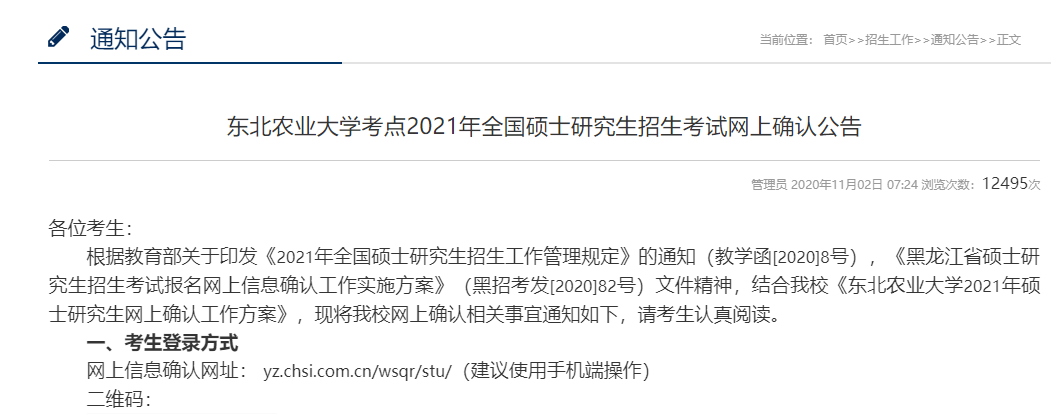 原文標題:2021年研招考試東北農業大學報考點網上信息確認公告