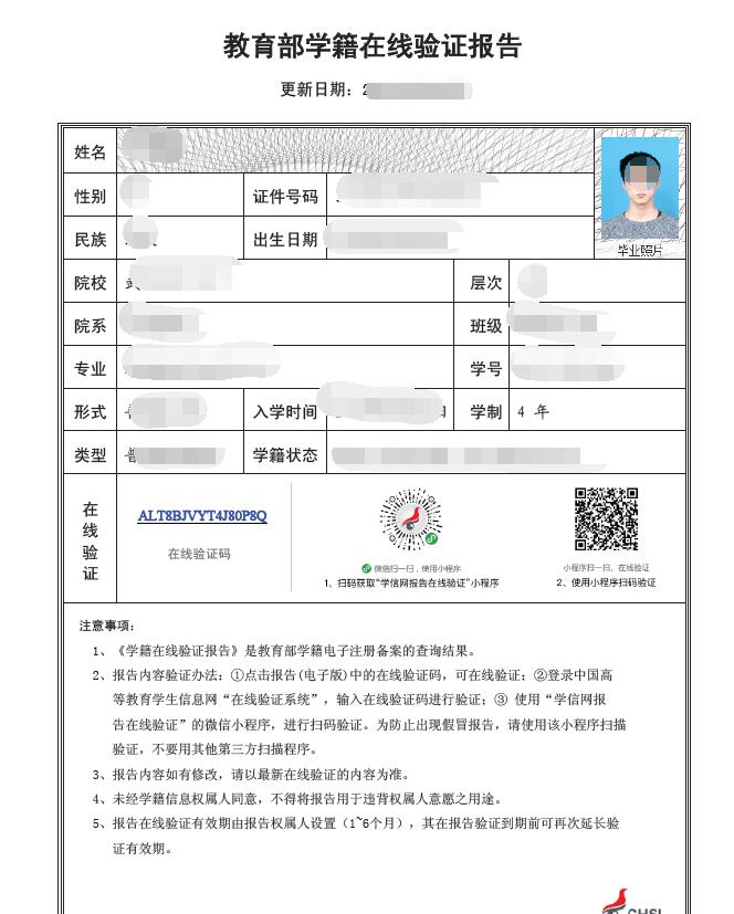 《教育部學籍在線驗證報告》 |