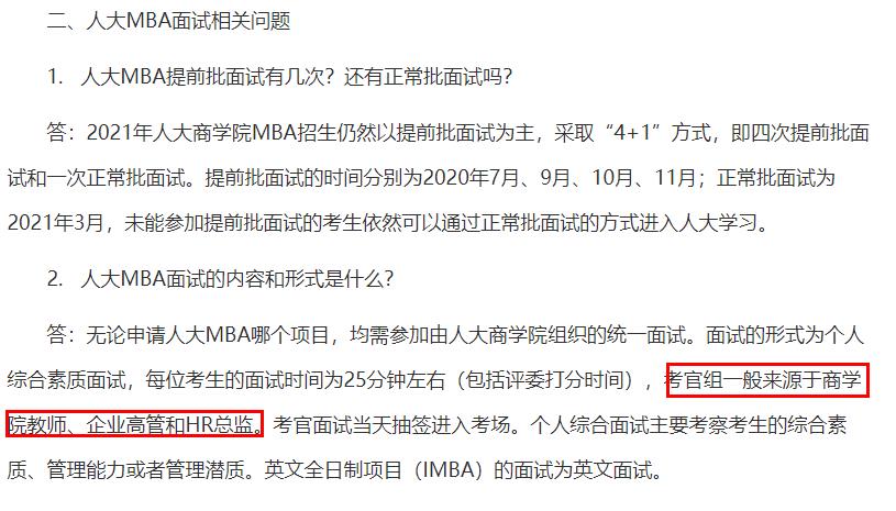 中國人民大學MBA考官組一般來源于商學院教師、企業高管和HR總監。