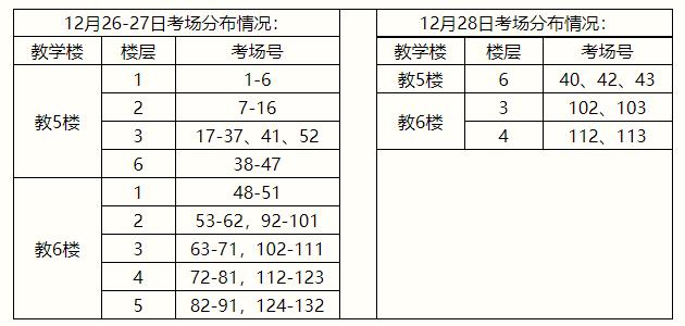各教學(xué)樓考務(wù)辦公室:教6樓:06104教室(1號(hào)考務(wù)室),06105教室(2號(hào)考務(wù)室);教5樓:05101教室(3號(hào)考務(wù)室)