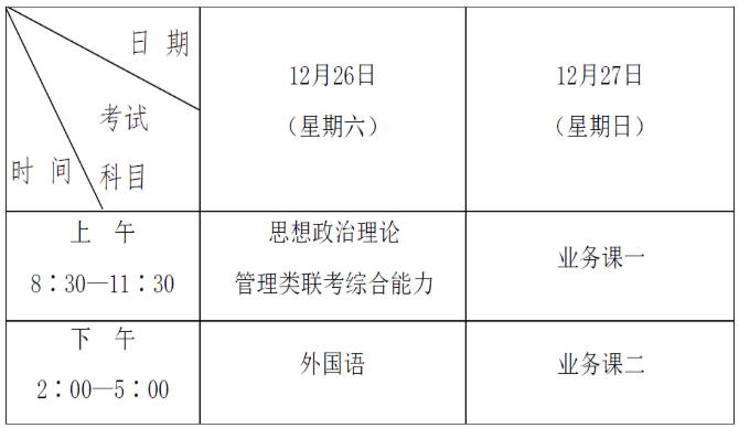 2021年全國碩士研究生招生考試將于2020年12月26日、27日舉行。具體考試時間如下所示: