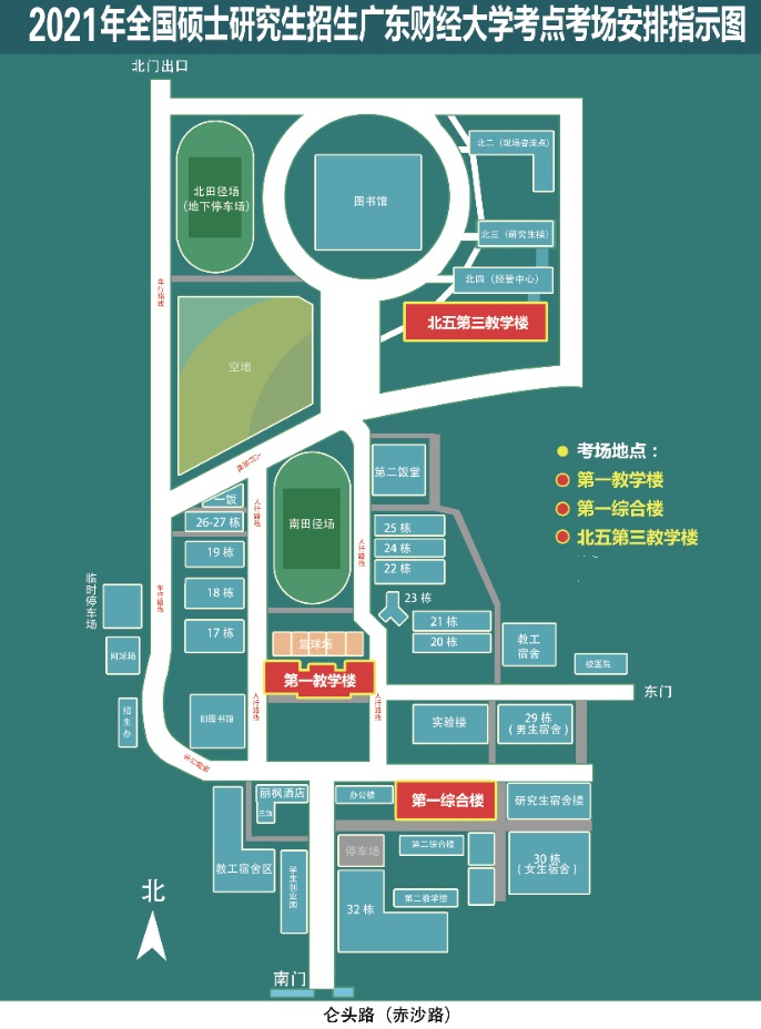 2.廣東財經大學考點考生考試地點設在第一教學樓、第一綜合樓、第三教學樓,準考證已經標明試室及座位號。請考生務必查看附件2廣東財經大學考點校內導圖,考試當天校內有導圖,請考生提前到校查看。根據防疫要求,考前不再安排考生查看考場。