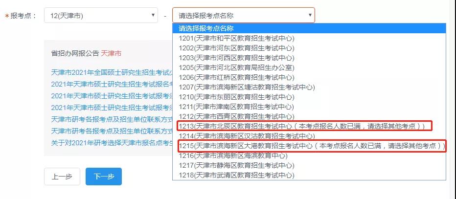 天津在第一天報名就已經有兩個報考點人數已滿,分別是天津市北辰區教育招生考試中心和天津市濱海新區大港教育招生考試中心。