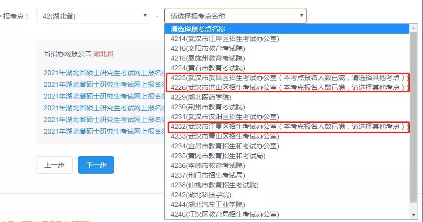 湖北在第一天報名就已經有三個報考點人數已滿,分別是武漢市武昌區招生考試辦公室、武漢市洪山區招生考試辦公室、武漢市江夏區招生考試辦公室!