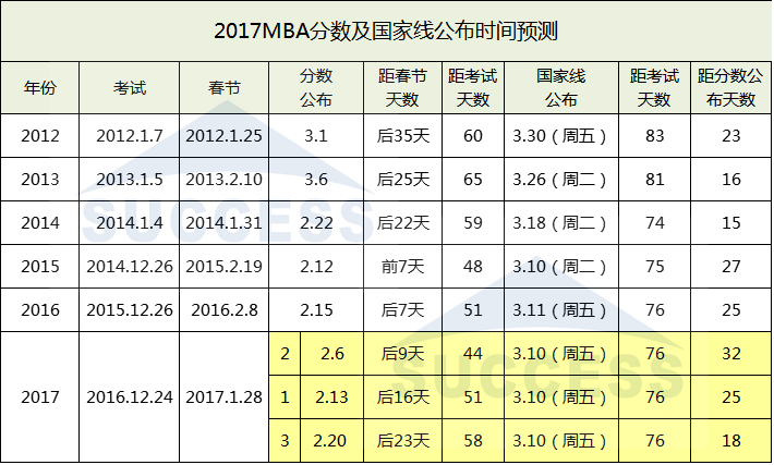 二、2017MBA國家分數線預測