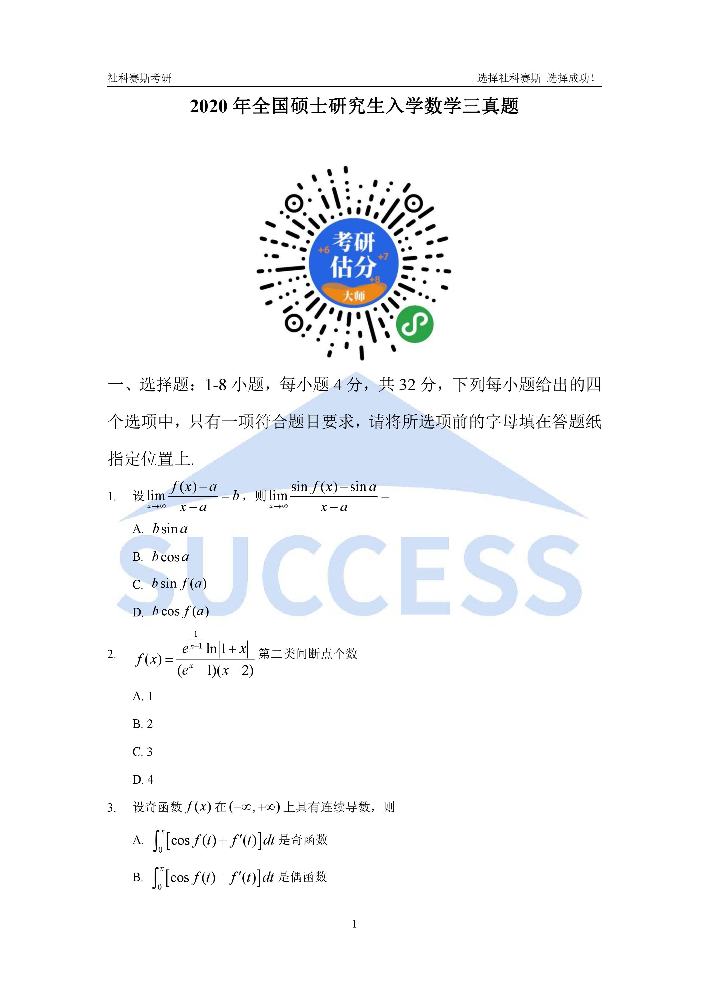相關熱詞搜索: 考研真題 2020年考研數學三真題 2020年考研數學三答案
