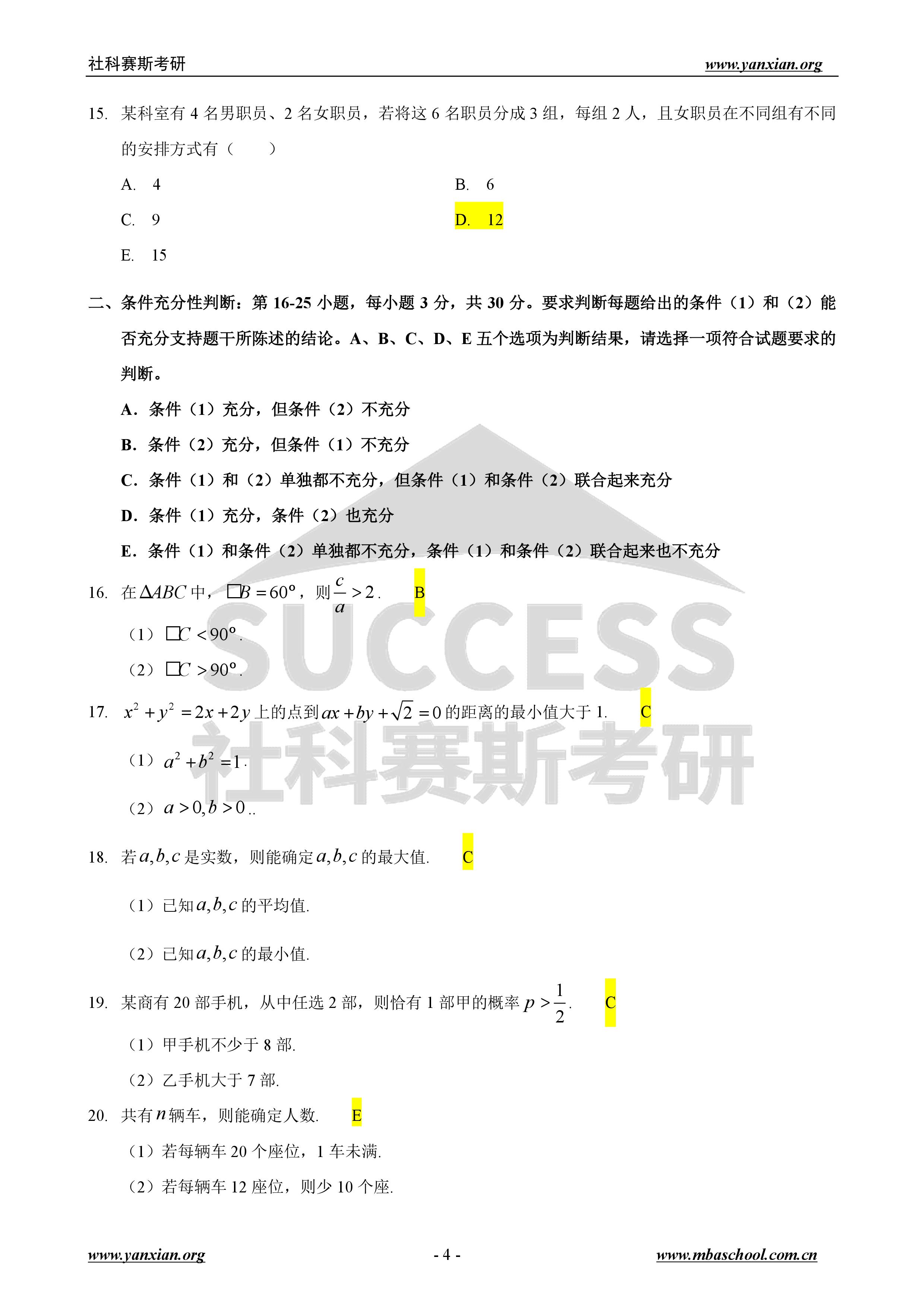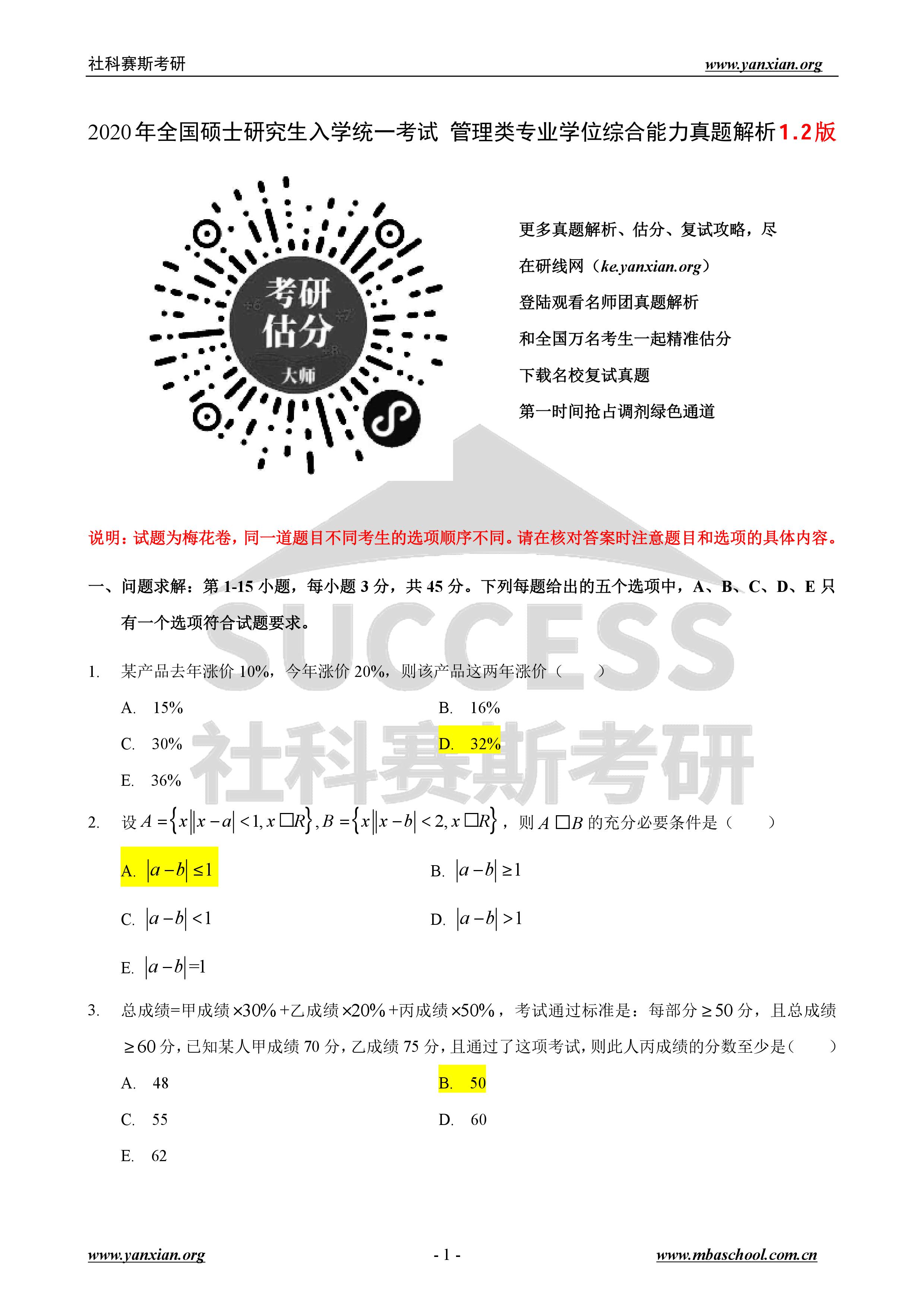 導(dǎo)讀:小編特意整理了“2020年全國(guó)碩士研究生考試管理類聯(lián)考真題及解析”,希望能對(duì)備考的小伙伴有幫助!