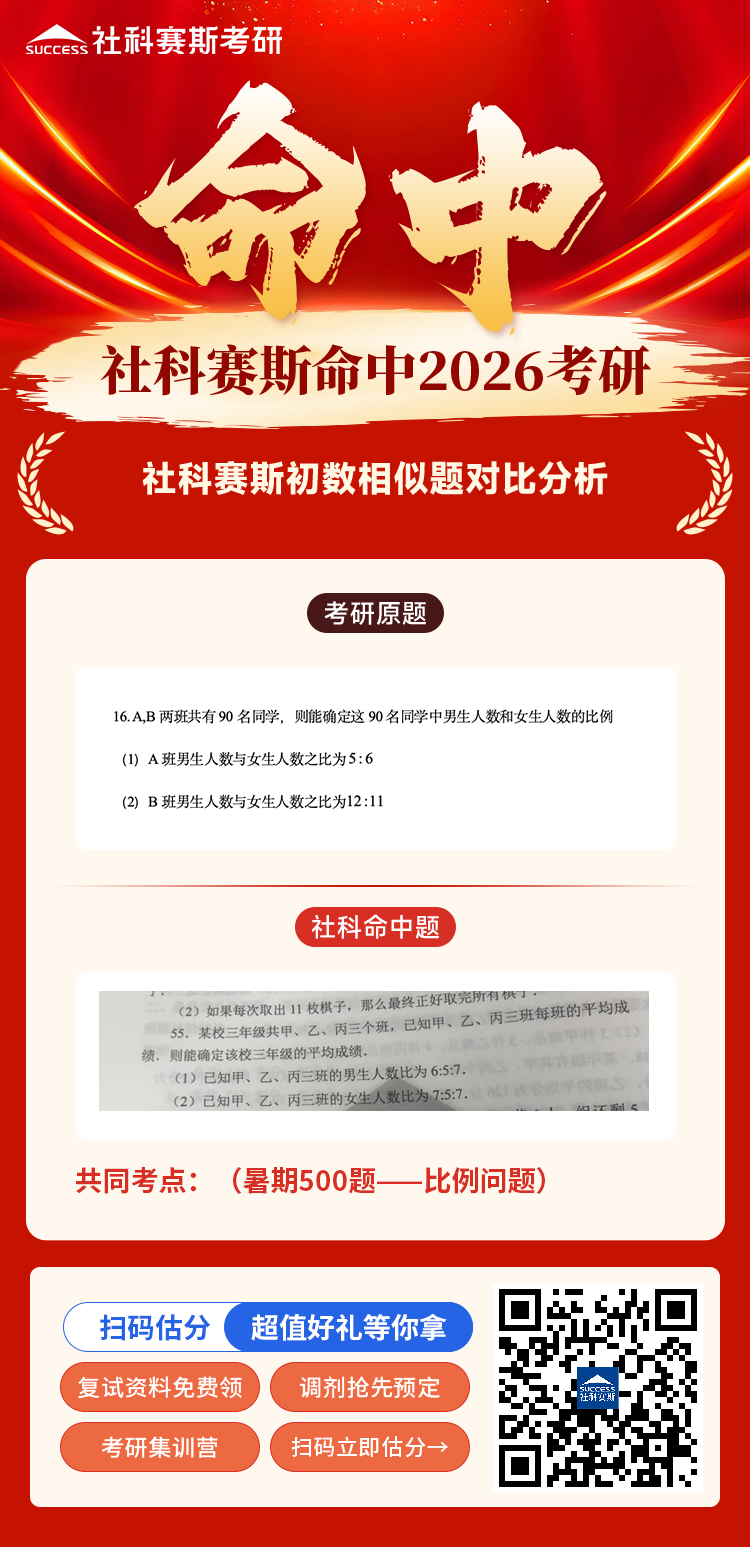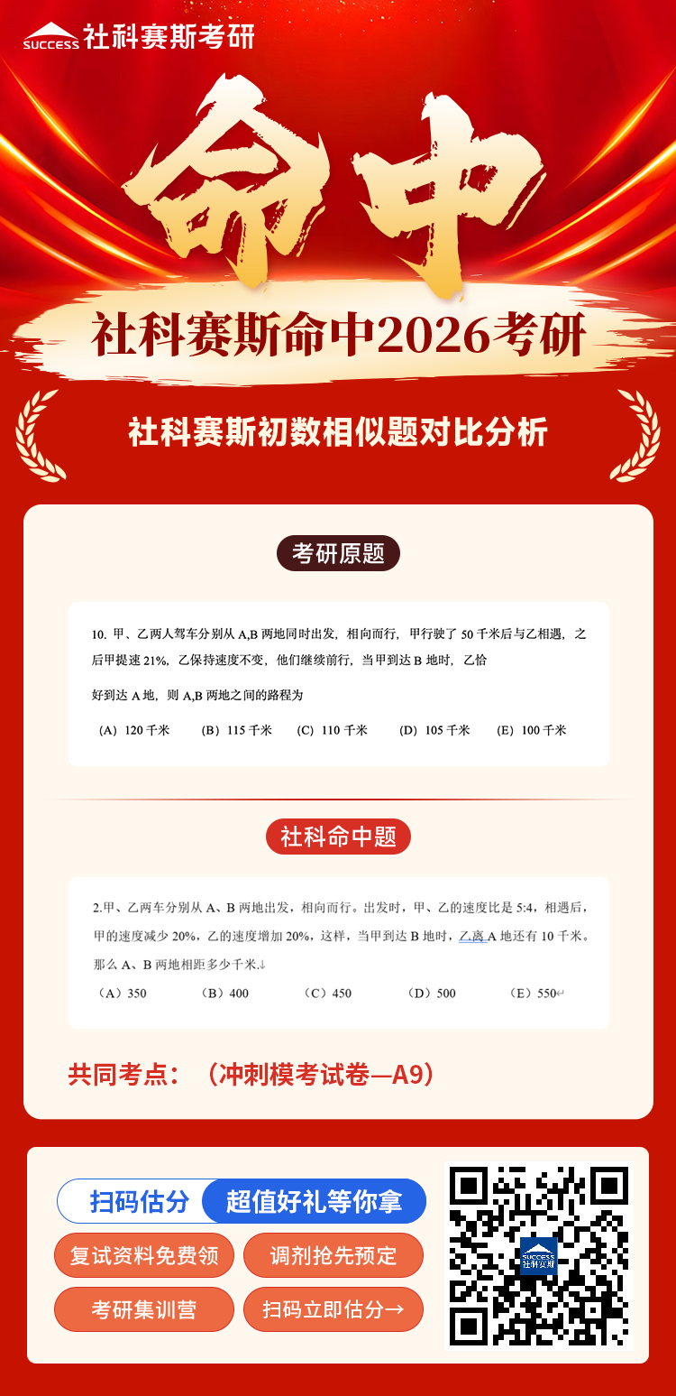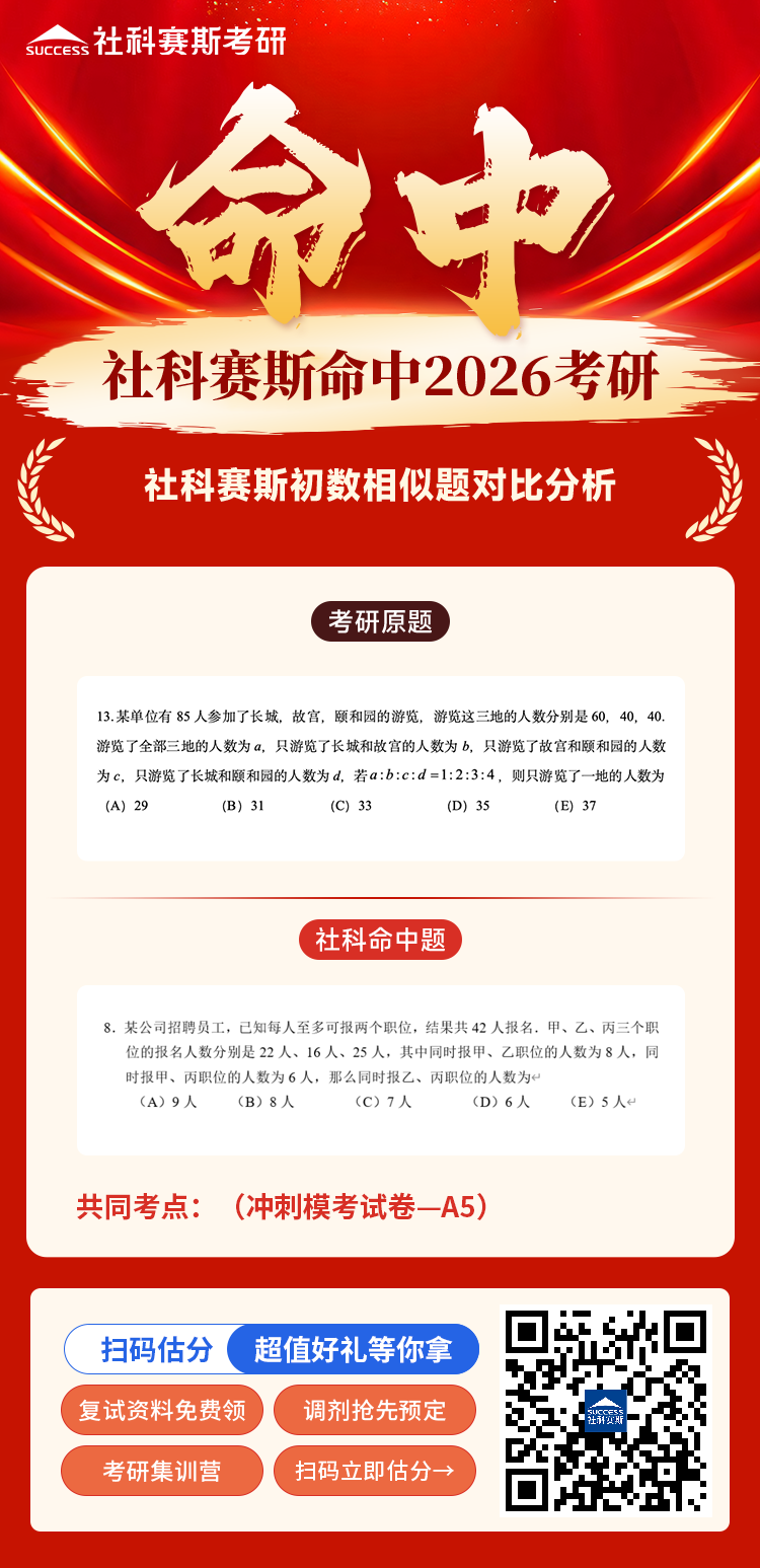 導讀:恭喜?社科賽斯命中2026MBA EMBA MEM MPA MPAcc管綜數學部分真題