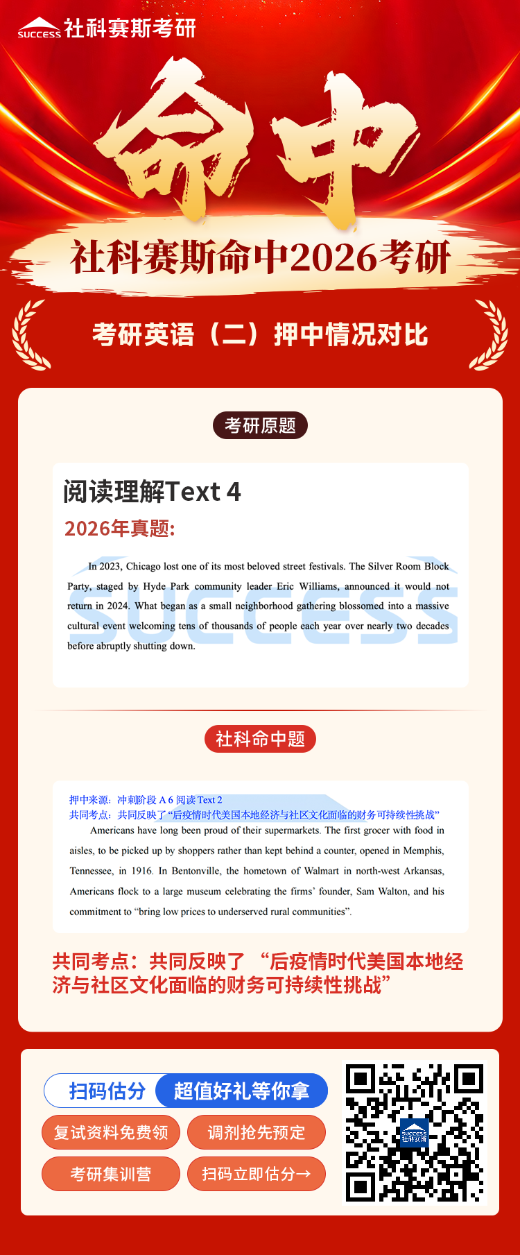 喜報:社科賽斯考研再次命中2026考研(英語二)大小作文!