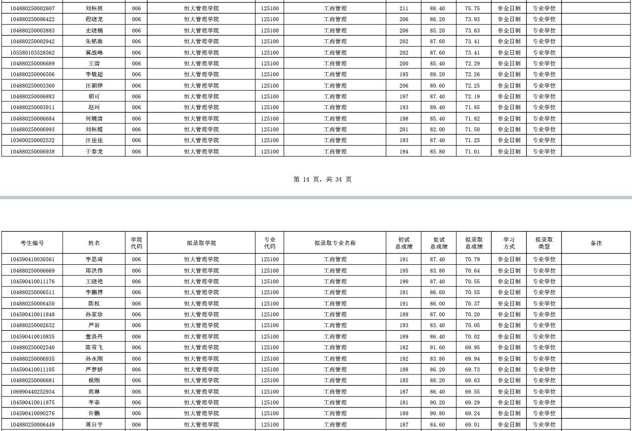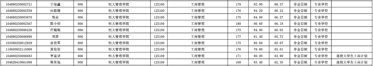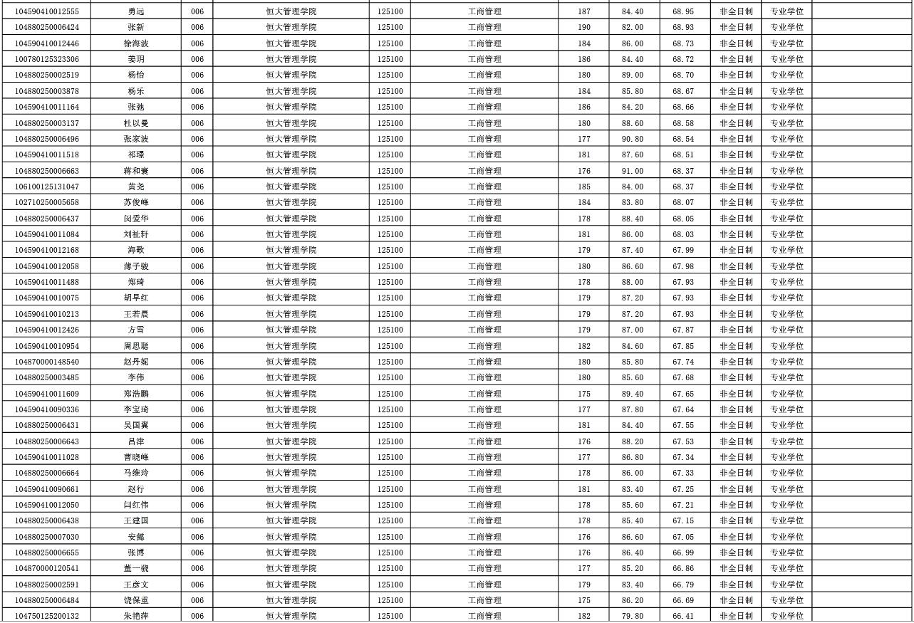 MBA-武漢科技大學工商管理專業擬錄取名單公示: