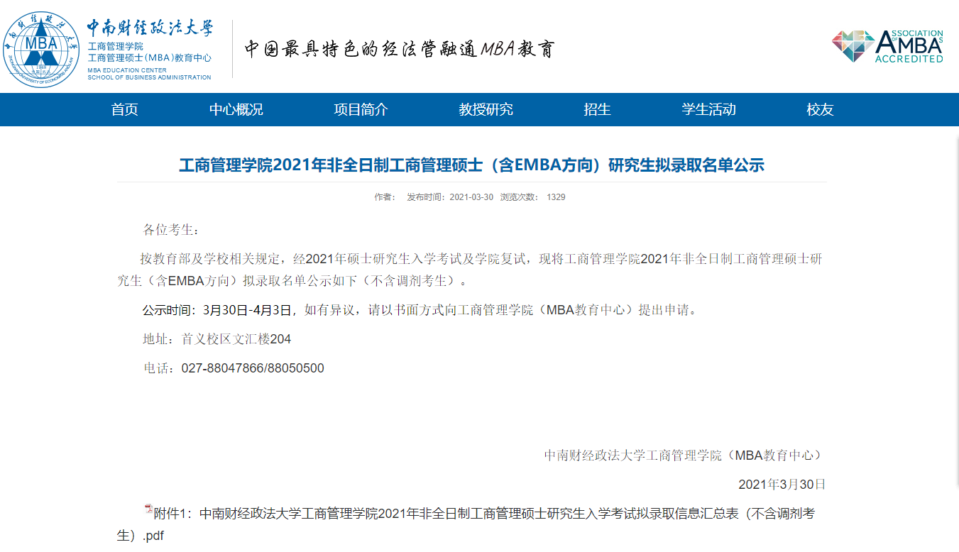 原文標(biāo)題:中南財(cái)經(jīng)政法大學(xué)工商管理學(xué)院2021年非全日制工商管理碩士(含EMBA方向)研究生擬錄取名單公示