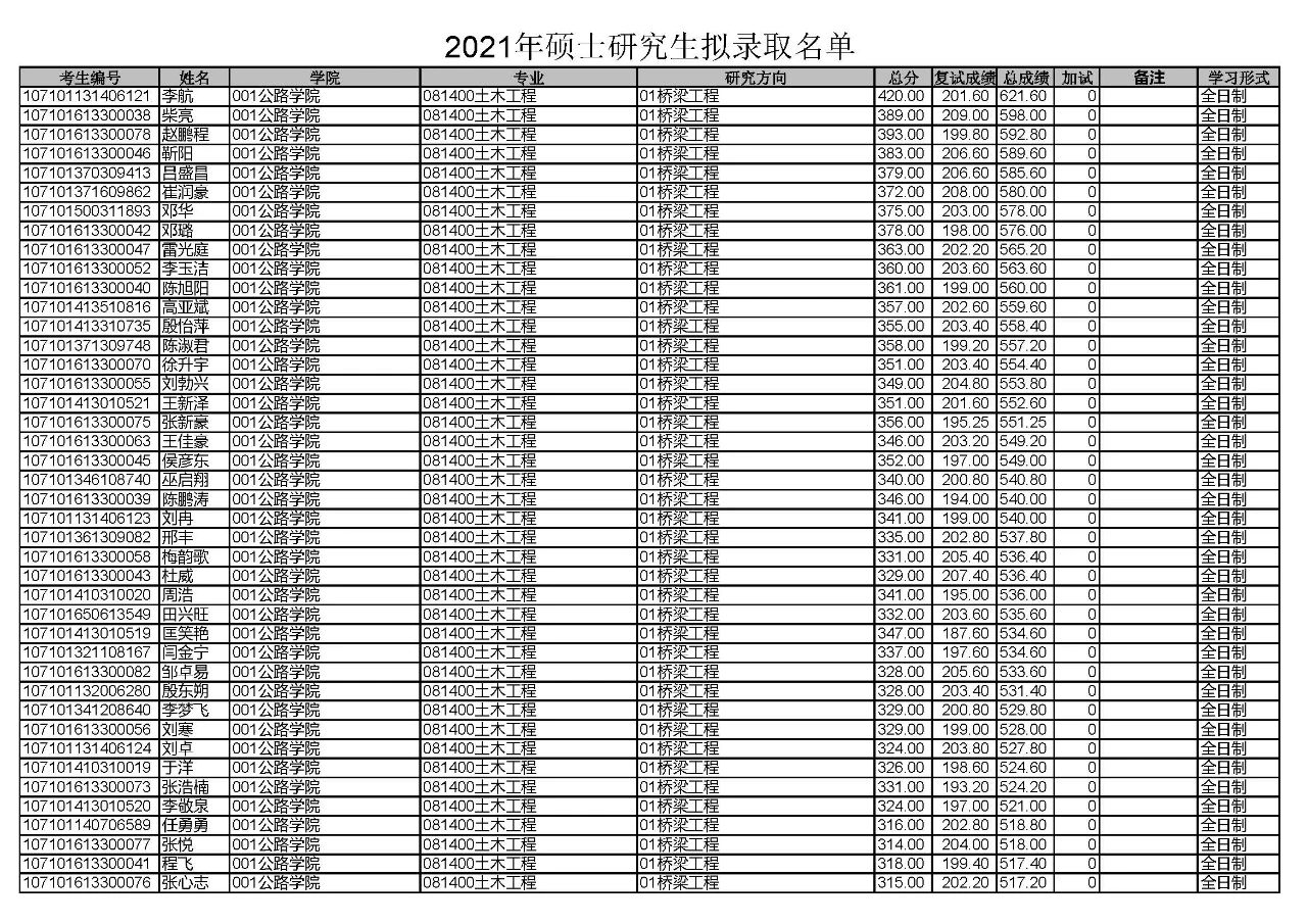 以上就是“2021考研擬錄取名單:長安大學2021年碩士研究生招生擬錄取名單公示”的全部內容,更多錄取名單相關內容請持續關注本網站。
