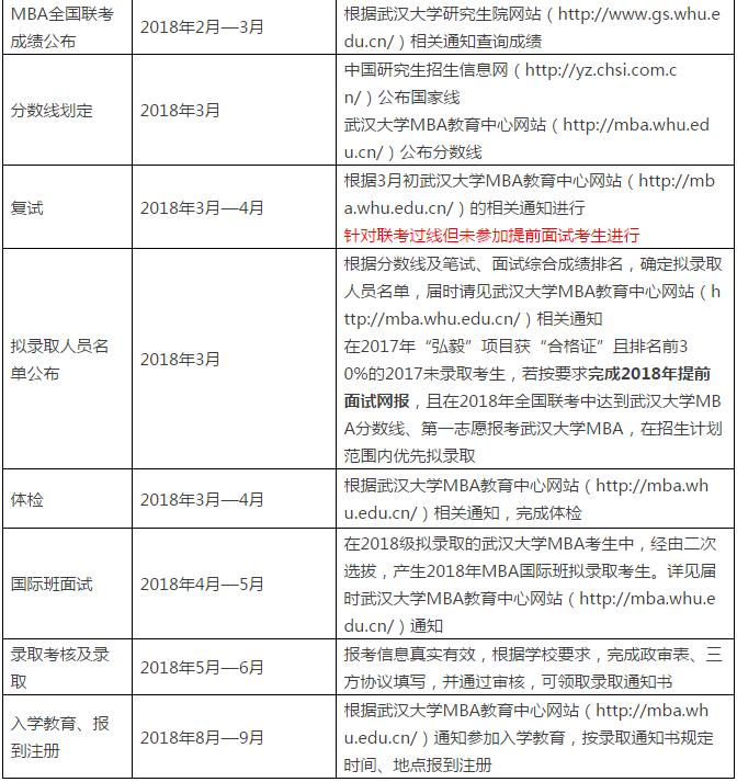 附件1 武漢大學2018年工商管理碩士(MBA)招生時間表