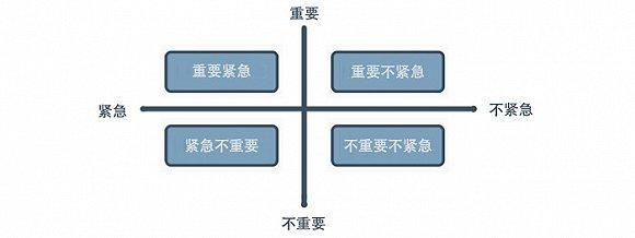 這個優先等級的排序方式你很可能已經知道了。緊急的事情可能并不重要,重要的任務或許不緊急。美國著名管理學大師Stephen Richards Covey提出了四象限任務分類法,按照重要程度和緊急程度給工作分類。然后優先處理重要且緊急的工作,不論它是不是一項大工程,或是耗費時間。(方法不難,難的是把工作分列在四象限里)。