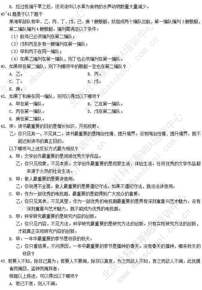 相關(guān)熱詞搜索: MBA真題答案 管理類聯(lián)考答案 管理類聯(lián)考真題解析 MBA MPACC