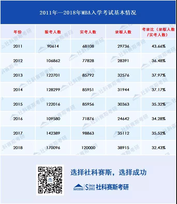 中國MBA教育自1991年正式開辦,第一批只有9所院校;2005年,MBA考試制度改革,題目難度下降,應用性增加,此后在經歷了設置提前面試、進行國際認證、納入統考等等變革之舉,MBA教育逐漸走向成熟,并且報考人數也是隨著考研整體人數的增加不斷攀升,得到人們的廣泛認可。