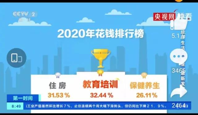 而且根據7月5日央視網公布的#2020年花錢排行榜#教育培訓成為花錢的大熱門,其中26到35歲的年輕人更重視自身軟件建設,也更愿意為提升自己進行教育培訓投入。