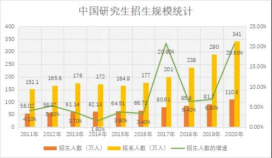 近年來,我國研究生教育穩健發展的同時,伴隨著“研究生貶值”聲音而來的則是不斷飆升的研究生報考人數,特別是2017年非全日制納入統考后,報考人數出現明顯的漲幅,2020年或預計達到400萬?嗯,真“香”