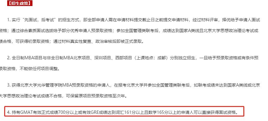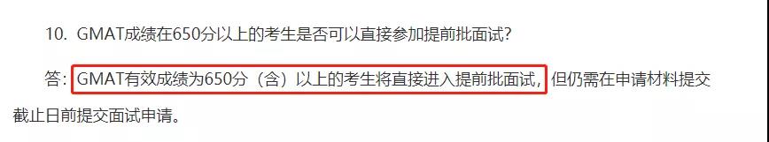 GMAT有效成績為650分(含)以上的考生將直接進入提前批面試。