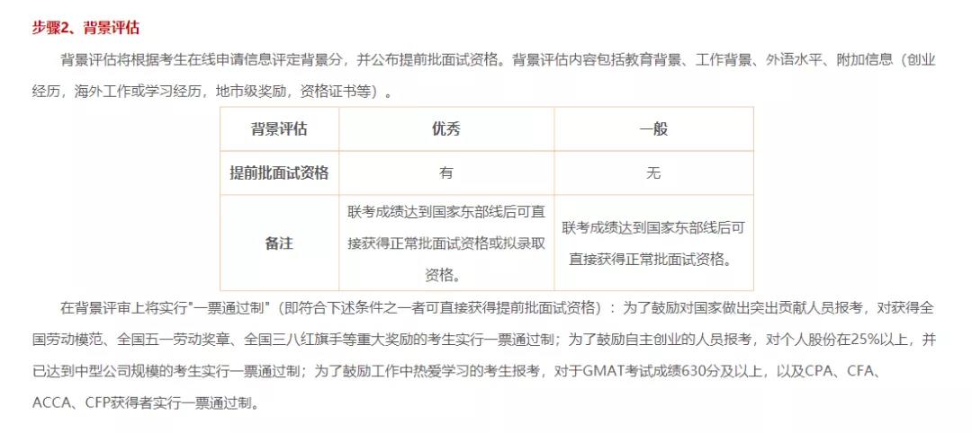 在背景評審上將實行"一票通過制"(即符合下述條件之一者可直接獲得提前批面試資格):