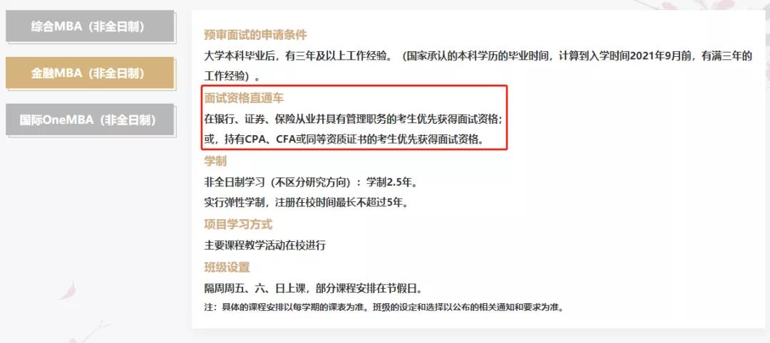 8.2. 本科畢業五年或以上且持有CFA特許資格(持證三級)、CPA全科合格證、ACCA、FRM、CGA其中一項證書的考生可以直接獲得提前面試資格。
