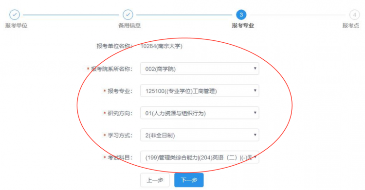 “報考專業”選擇“125100((專業學位)工商管理)”。