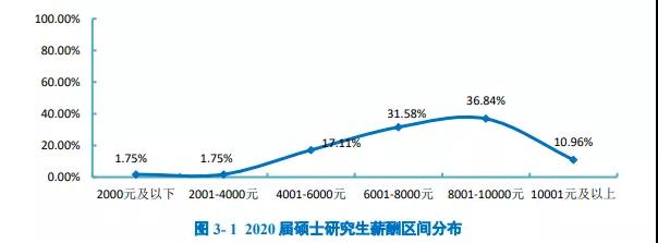 大連海洋大學2020屆碩士研究生稅前月均收入為5812.34元;月均收入區間主要集中在3501-5000元(35.48%),其次為6501-8000元(19.35%)。