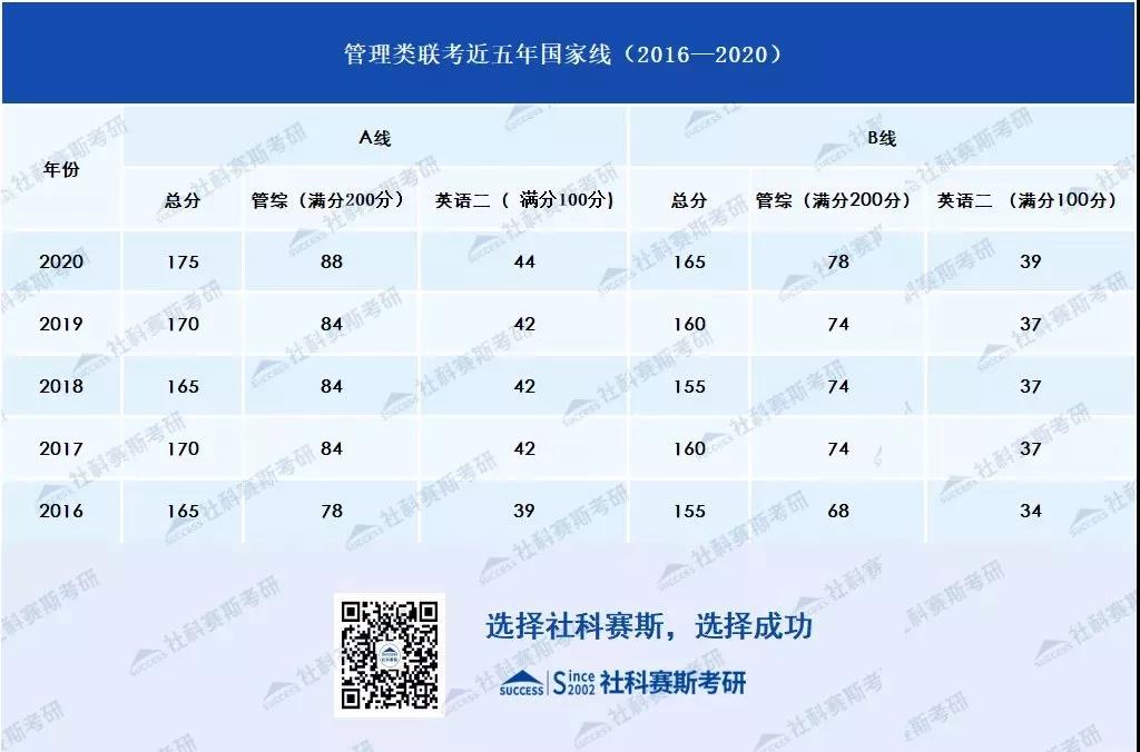 MEM屬于管理類聯(lián)考七大專碩之一,以下為2016-2020年國(guó)家線(進(jìn)入復(fù)試的最基本要求)