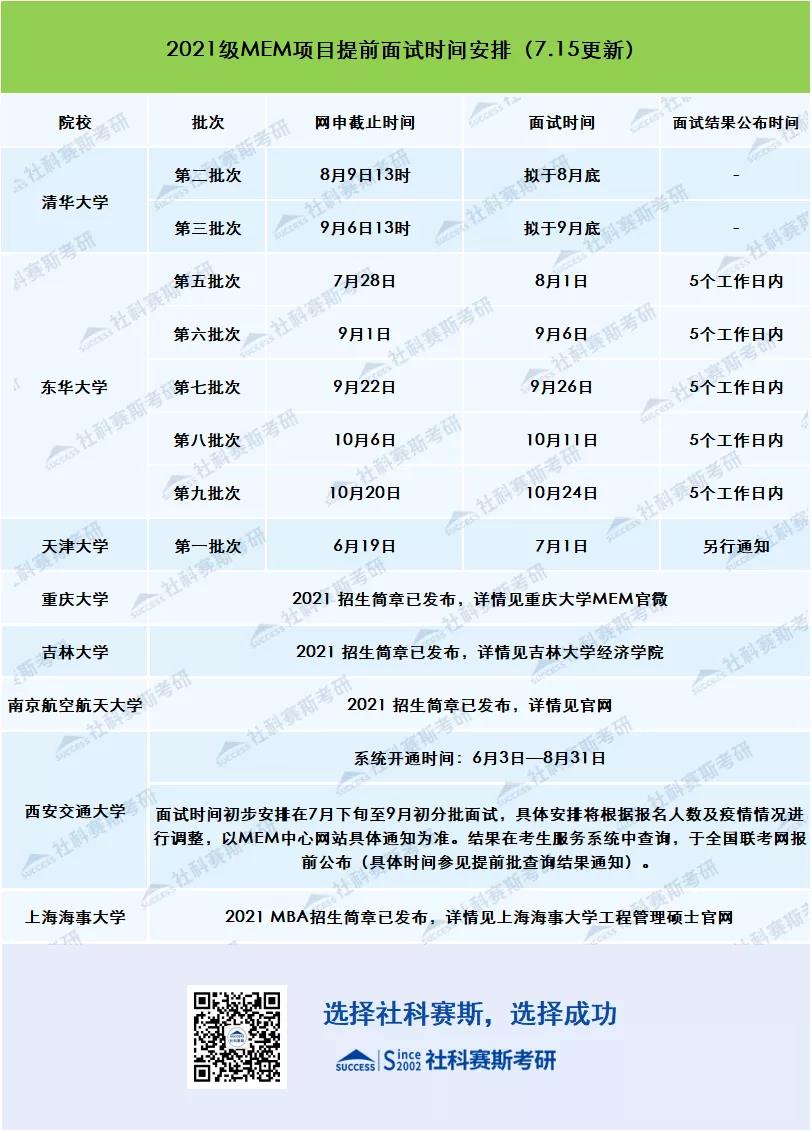 2021級(jí)MEM(125601)提面時(shí)間(更新中)