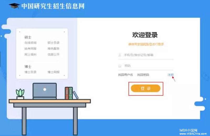 打開研招網(wǎng)首頁后,用你的學信網(wǎng)賬號登錄網(wǎng)報系統(tǒng),沒有學信網(wǎng)賬號的考生,需要注冊一個。