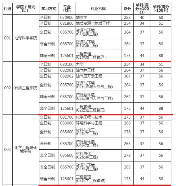 中國石油大學(北京)2020年MEM(工程管理)復試基本分數(shù)線:175/88/44