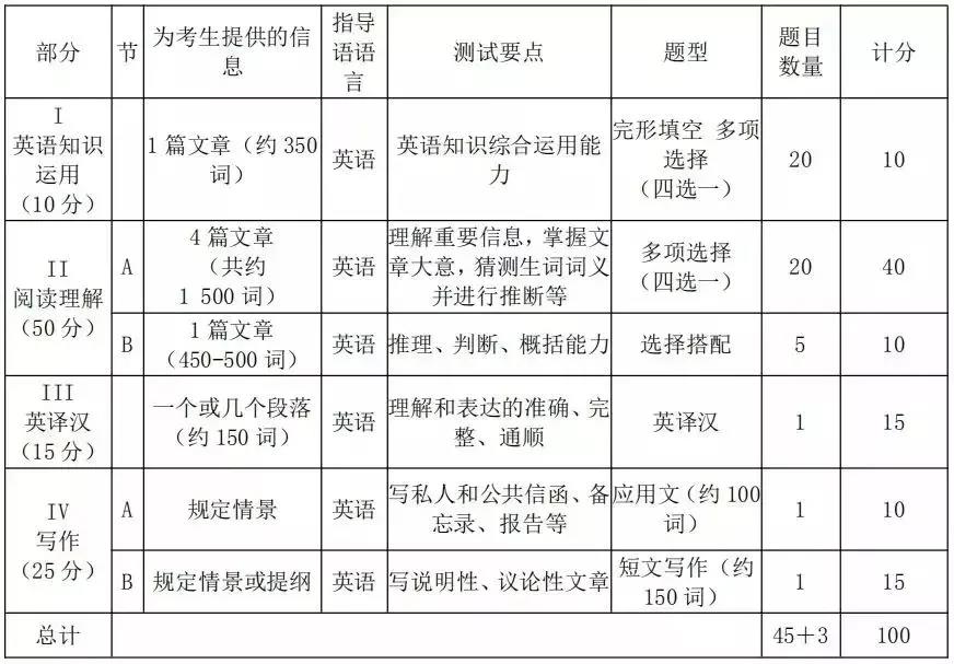 (2)英語二題型及分值