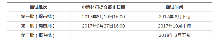 1、 在每批次申請材料提交截止日期后不再接受本批次面試報名和申請材料,但未完成的申請材料可持續完善,直至下一批次的截止日期。