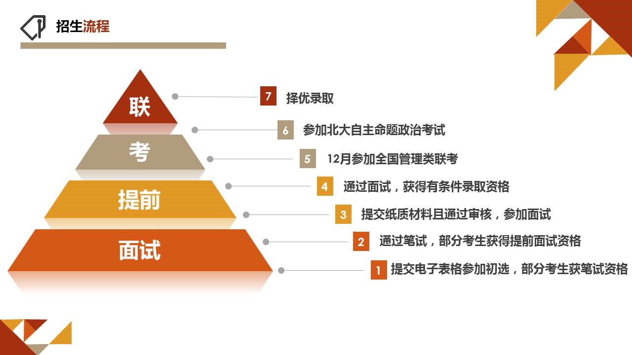 注:①、所有報考北京大學工學院工程管理碩士的考生,必須參加提前復試才可獲取報考資格,即未經提前復試而直接參加全國聯考者,無論成績高低均不予錄取。②、每階段具體流程請參閱后文各分項介紹。③、本項目原則上不接受調劑。
