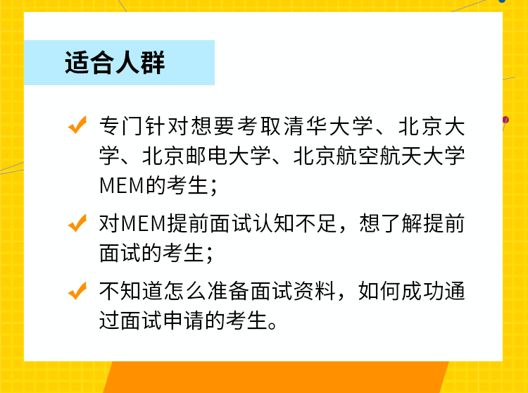 導(dǎo)讀:備戰(zhàn)2021MEM面試精品課,大咖名師 實(shí)戰(zhàn)高分 全力以赴 脫穎而出!首個(gè)專業(yè)MEM面試課程,馬上聯(lián)系在線客服,預(yù)約試聽(tīng)吧!精彩課程不容錯(cuò)過(guò)