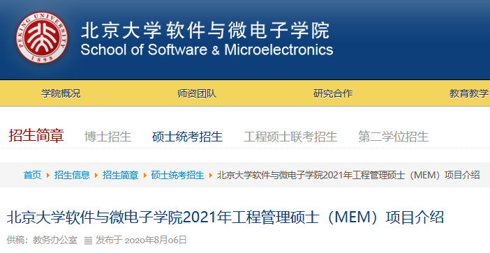 《北京大學軟件與微電子學院2021年工程管理碩士(MEM)項目招生說明》。