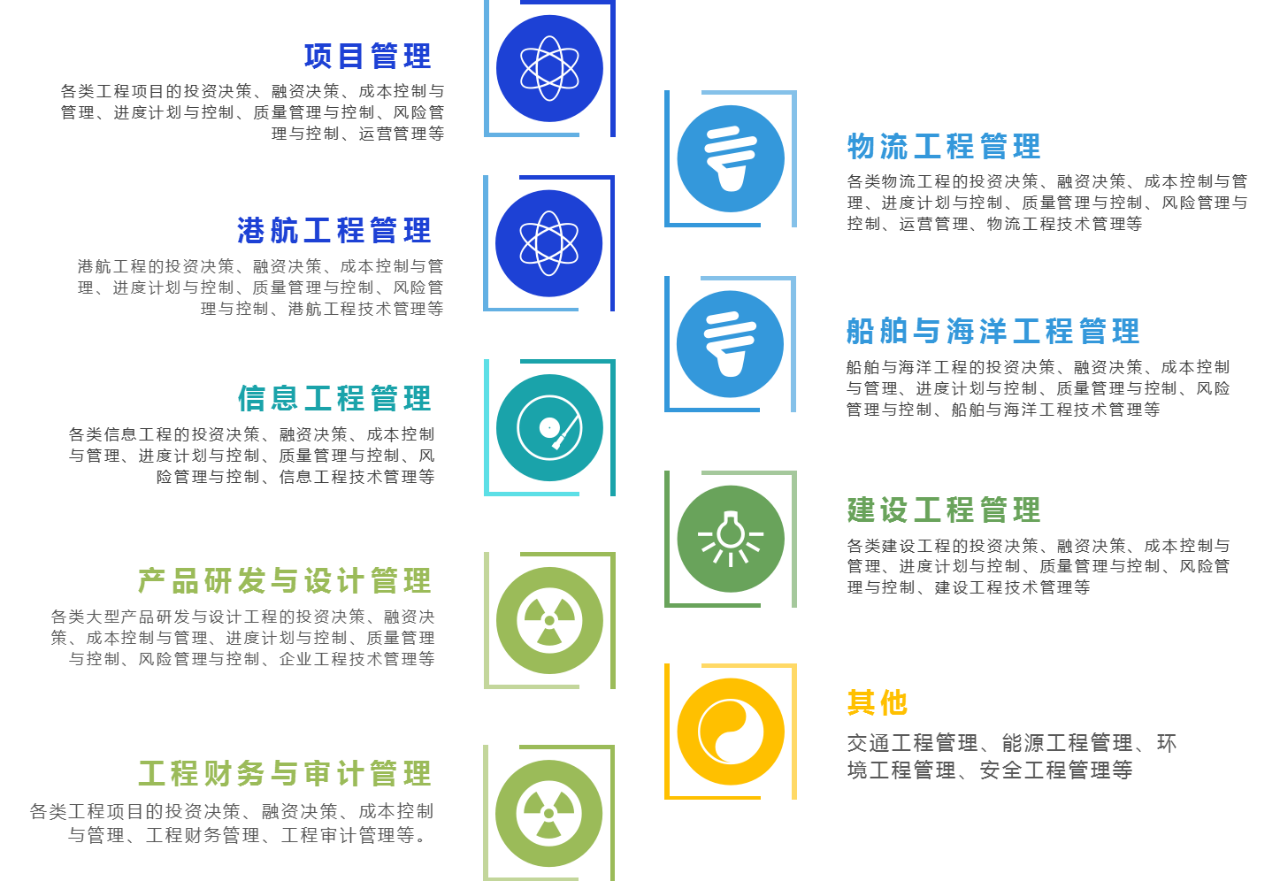 培養具備良好的政治思想素質和職業道德素養,面向社會需求、面向科技前沿、適應工程技術發展和創新需要,掌握系統的管理理論、現代管理方法以及相關工程領域的專門知識,具有較強的發現、分析和解決實際問題能力,能夠承擔工程管理、技術管理及其他管理工作,具有良好職業素養的高層次、應用型專門人才。