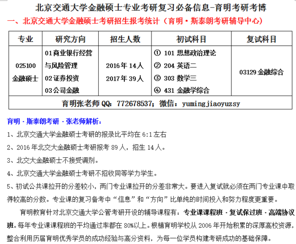 四、北京交通大學金融碩士考研經驗分享(育明·斯泰朗考研輔導中心)